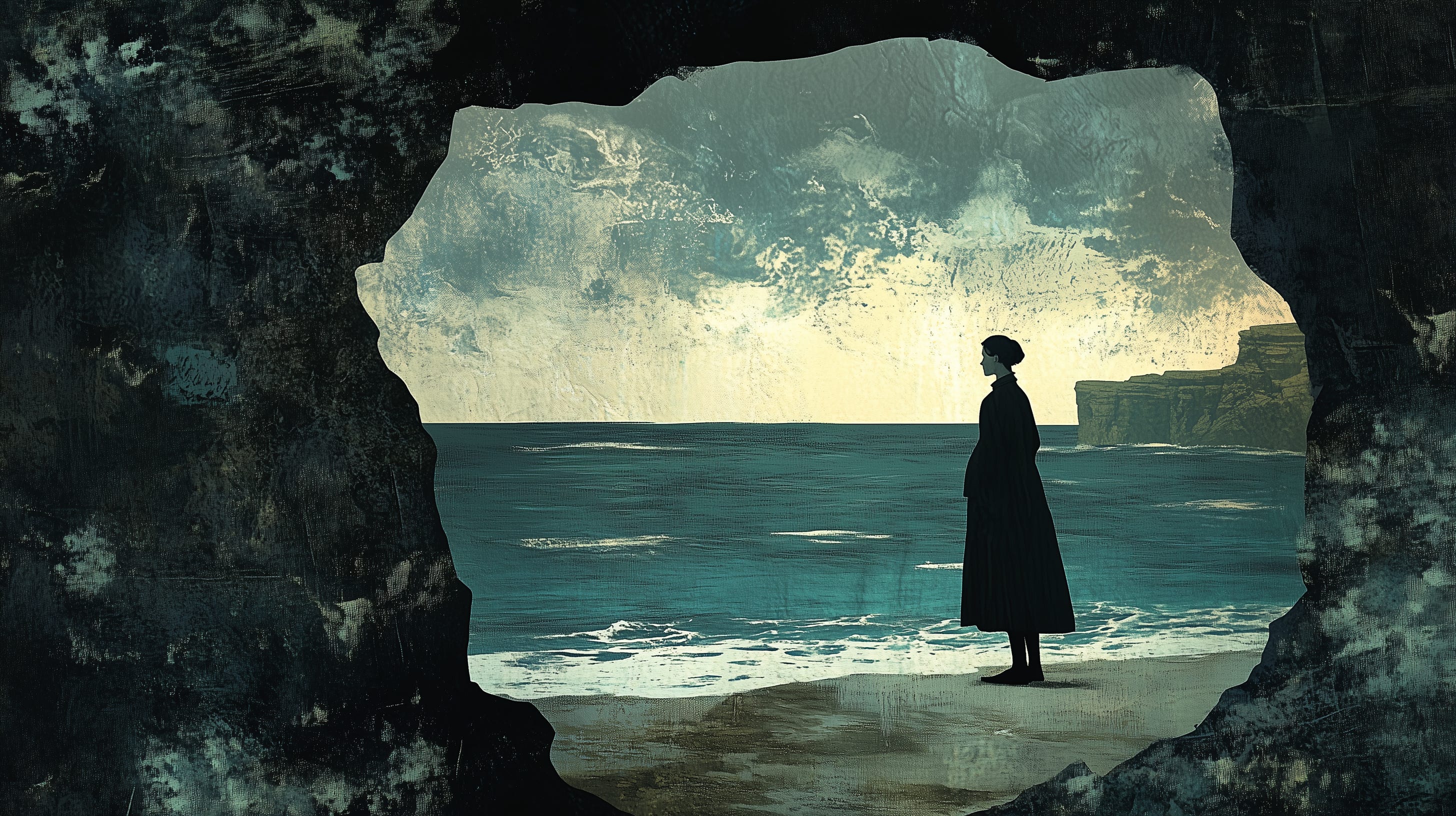 Her focus was far off, as stories often told to expect of her. She watched waves crash into a distant cliffside, her feet planted in the firm sands of a winter’s beach. Her few loose strands of hair whipping wildly in the unfettered winds of the ocean.