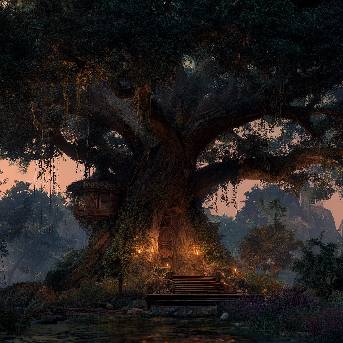Honored vestige of Hearthwood was Hometree. It was within its own grove carved by time-worn path. People who listened would be one with the woods. Spirit could nurture an elf to its bosom by spreading its energy through all natural means, but only when the way in which they chose to live and harvest was through balance.