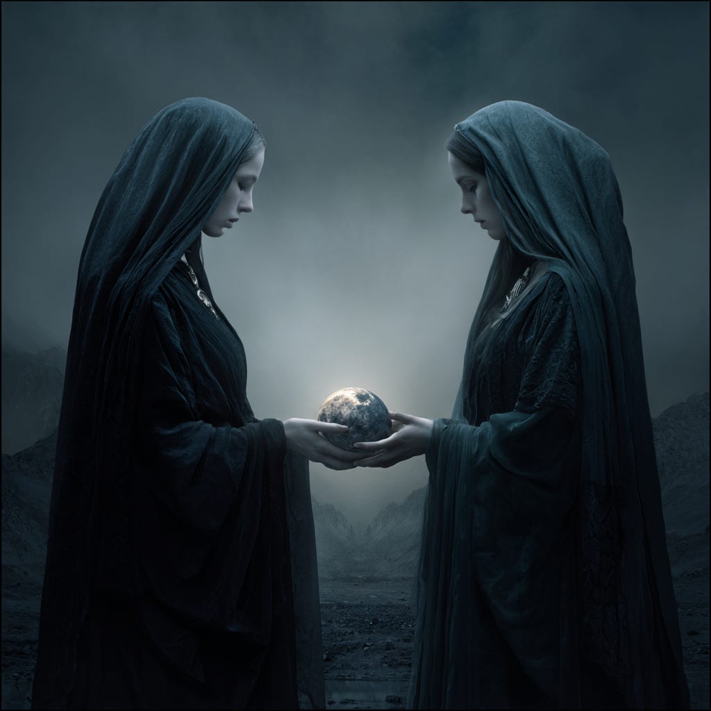 Two would be—quite possibly—as opposite as you could see. Inside, not quite, the same in bright. In darkness too they’d come unglued. A strangest thing to feel it through—a sisters love that binds like glue. She’d never need to see her face but hoped for it through time and space. That one who owned the world at large—the girl who thought herself in charge. The two would hurt the very same—no matter how they played the game. Together through some harmony this world would be forever free.