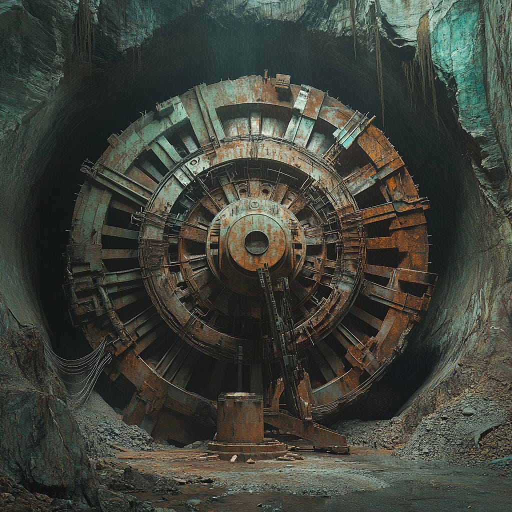 This machine looked like an ancient water-power turbine bored into the granite of Grammaton itself — emanating constantly churning vibrations and sound, with rumbling fluctuations, as if an unstable combustion engine.